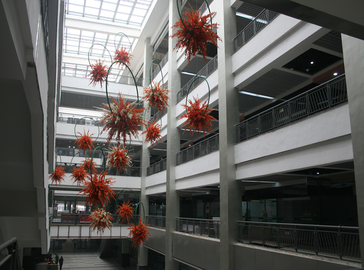國(guó)際商貿(mào)城五區(qū)市場(chǎng)吸納了國(guó)際大型商業(yè)中心的先進(jìn)理念,配有電子商務(wù)系統(tǒng)、智能安全系統(tǒng)、物流短駁配送系統(tǒng)、金融服務(wù)系統(tǒng),中央空調(diào)、大型電子顯示屏、寬帶網(wǎng)絡(luò)、數(shù)據(jù)中心、環(huán)繞高架車(chē)道、大型停車(chē)場(chǎng)、雨水回收器、自動(dòng)天窗等配套設(shè)施一應(yīng)俱全,堪稱集購(gòu)物、旅游、休閑為一體的國(guó)際性商務(wù)中心,是國(guó)內(nèi)現(xiàn)代化、國(guó)際化水品最高的全球小商品批發(fā)交易市場(chǎng)。