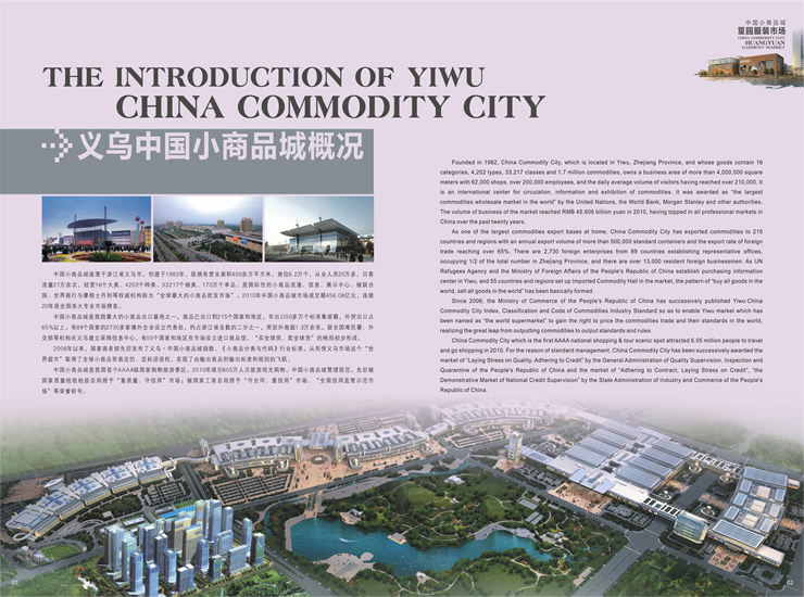 中國小商品城篁園服裝市場地處義烏最為繁華的繡湖商圈,市場總占地117畝,總建筑面積42余萬平方米,總投資14億,余2011年4月份投入使用。篁園服裝市場定位為專業(yè)服裝市場,符合市場國際化、品牌化、多元化的發(fā)展趨勢,有利于提升義烏服裝市場的競爭力,推進專業(yè)化、規(guī)模化發(fā)展。 為優(yōu)化行業(yè)布局,強化競爭實力,突出規(guī)模優(yōu)勢,凸顯市場商機,篁園服裝市場1-5樓布局男裝.皮裝;女裝;童裝;牛仔.褲;睡衣.羊毛衫.運動服.襯衫共5個經營類別。